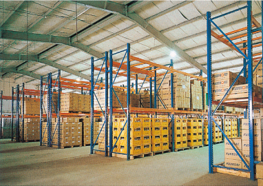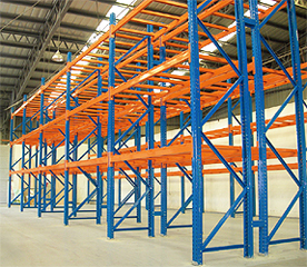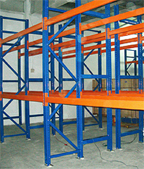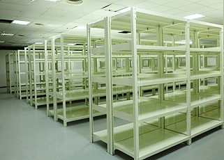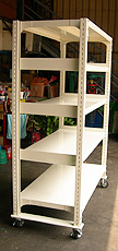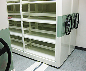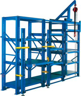 本儲放架為抽屜式、以上方天車吊架作為存取工具、可減少走道面積